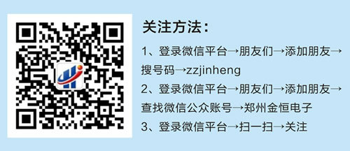 開通微信--點擊“朋友們”--“添加朋友”--搜號碼“zzjinheng” --然后點“關注”, 即可添加公司“鄭州金恒電子”微信公眾平臺帳號。