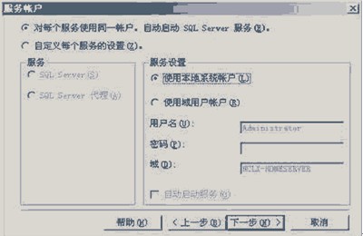 ?第8步:在“服務帳戶”對話窗口中,選“使用本地系統帳戶”。
