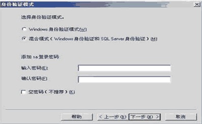 ?第9步:請選“擇混合模式”,將該密碼設置為sa,以方便登錄。設置的密碼請不要忘記,因為基于SQL SERVER2000各種應用系統在安裝或使用過程中往往需要sa的密碼。
